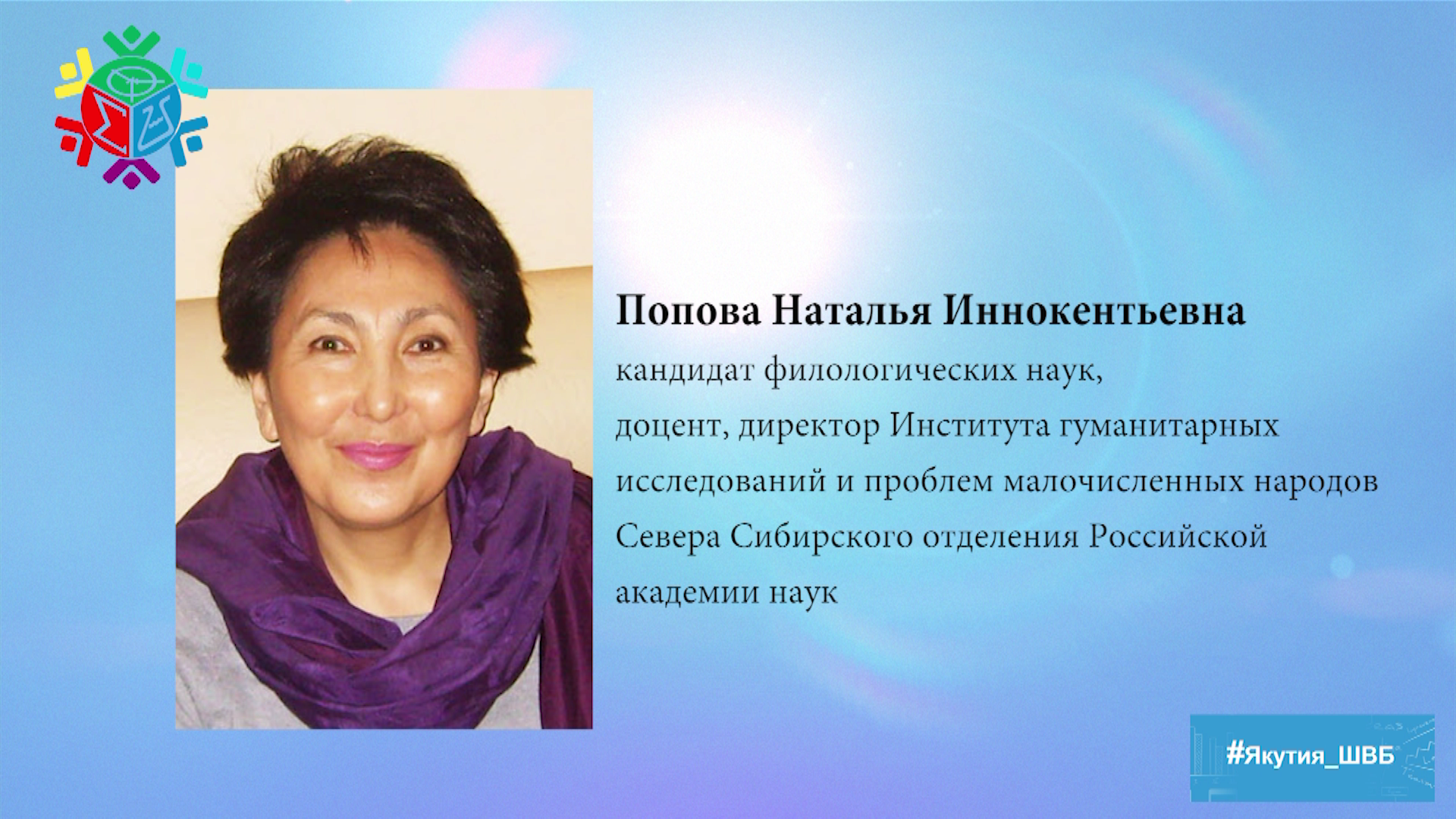 - Попова Наталья Иннокентьевна, кандидат филологических наук, доцент, директор Института гуманитарных исследований и проблем малочисленных народов Севера Сибирского отделения Российской академии наук.
