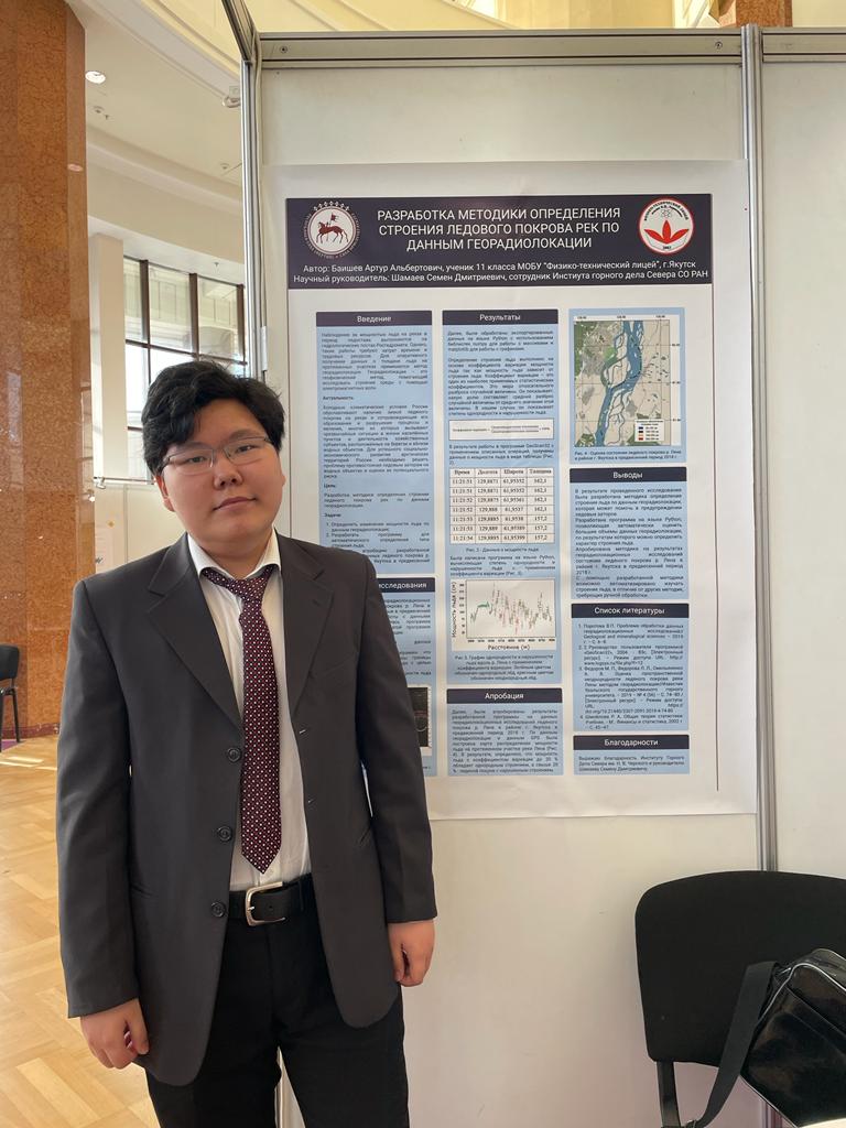 1. Баишев Артур, ученик 11 класса МОБУ «Физико-технический лицей», тема «Разработка методики определения строения ледяного покрова рек по данным георадиолокации»;