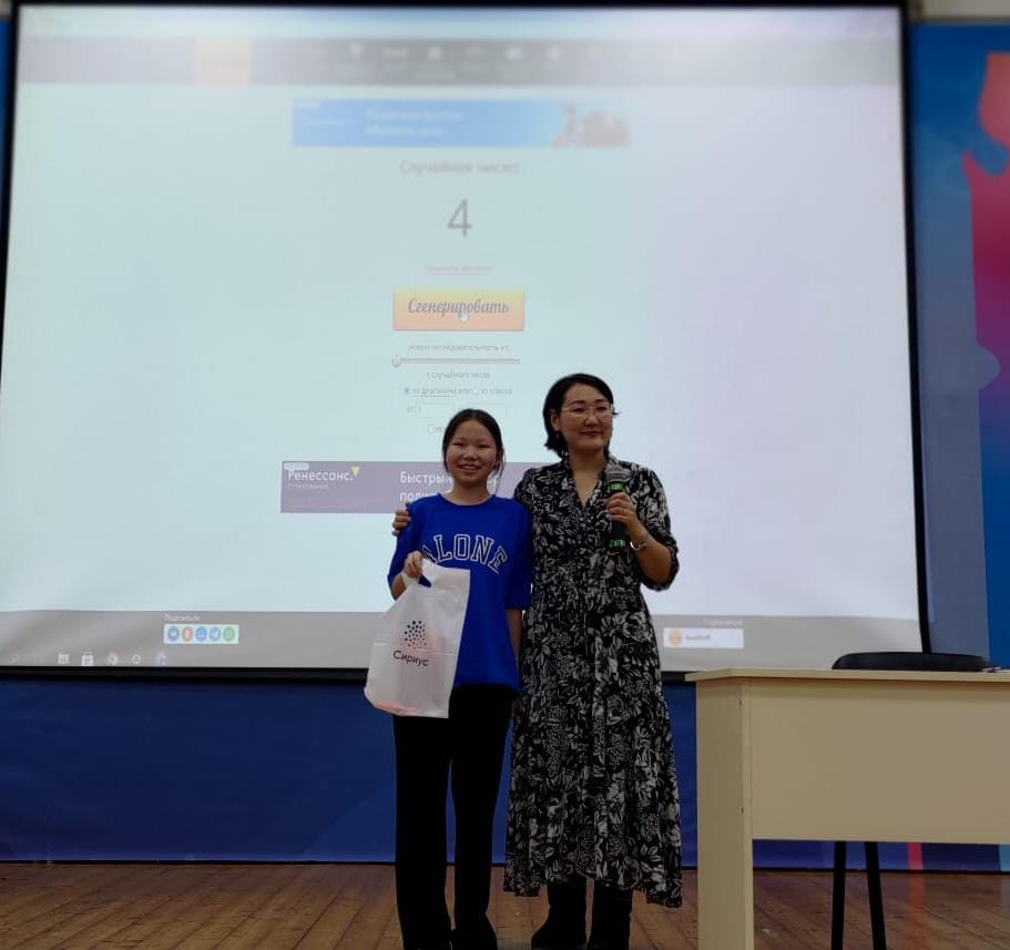 Также был проведен розыгрыш еще одного подарочного комплекта среди тех, кто прошел тренажер по лингвистике. Победителем в розыгрыше стала Каратаева Иванна, ученица 5 класса Вилюйской гимназии.
