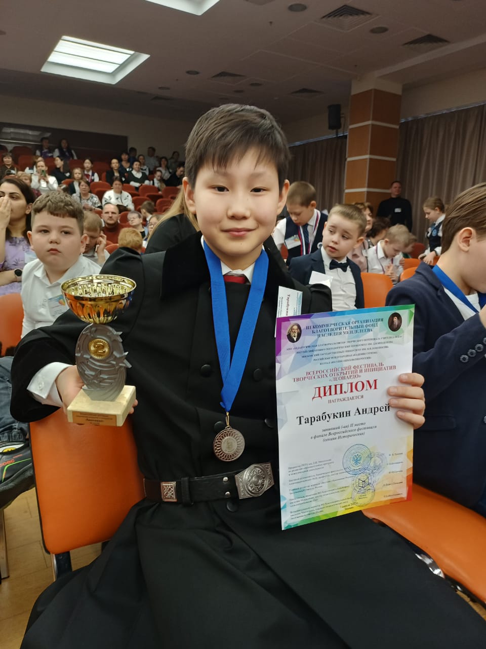 Тарабукин Андрей, "Леонардo" үрүҥ көмүс Кубогын хаһаайына Дьокуускай куорат,17-с оскуола,6-с кылааһын үөрэнээччитэ: «Бу фестиваль "История" секциятыгар кытынным. Араас регионтан кэлбит оҕолору кытта билистим. Ордук кинилэр үлэлэрин чаҕылхайдык көмүскүүллэрин астынным. Темалара араас эрээри, барыта интириэһинэй. Үлэлэрбитин наука доктордара сыаналаатылар. Ол долгутуулаах этэ. Оскуолам, Билим дьо5ус академия, Сахам Сирин иннигэр улахан эппиэтинэс эмиэ долгутара. Күүстээх бэлэмнэниим, учууталым, куратордарым төрөппүттэрим эрэллэрэ көмөлөстө. Фестивальга, доҕордуу сыһыан баара киһини холкутутар эбит».