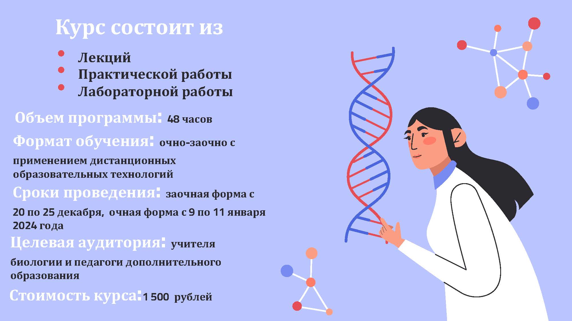 Дорогие учителя биологии и педагоги дополнительного образования! Объявляем начало регистрации слушателей курса повышения квалификации "Современная генетика в школе".