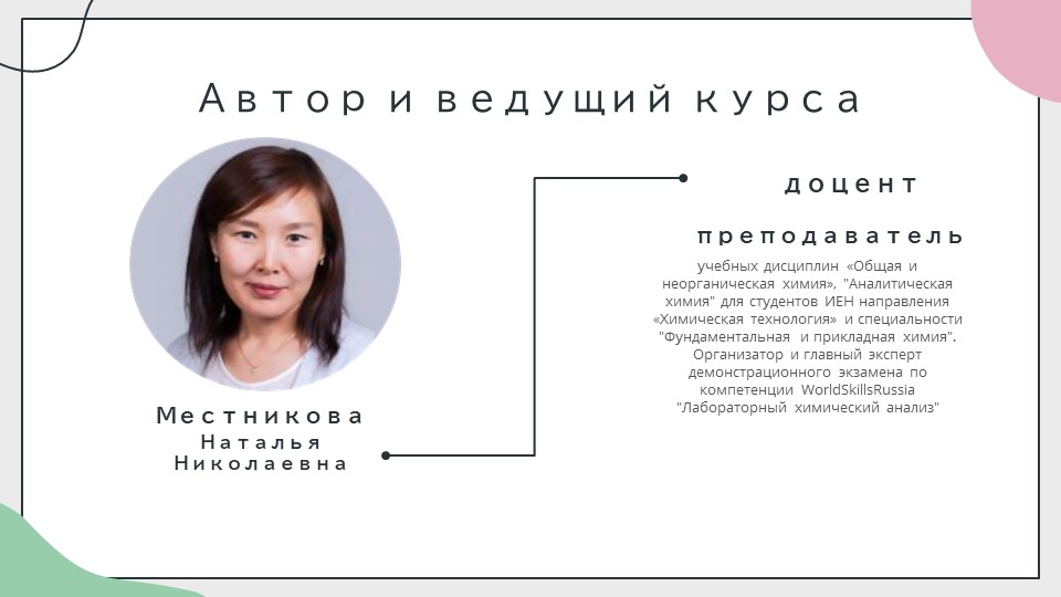 Приглашаем учителей химии и педагогов дополнительного образования на курсы повышения квалификации «Организация научно-исследовательской и проектной деятельности школьников с использованием методов химического анализа». Программа реализуется Домом научной коллаборации Н.Г.Соломонова ФГАОУ ВО «СВФУ им. М.К. Аммосова». Программа направлена на совершенствование профессиональных компетенций учителей основного общего и среднего общего образования, педагогов дополнительного образования.
