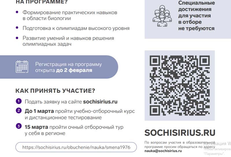 По вопросам участия в программе просим обращаться по адресу nauka@sochisirius.ru.