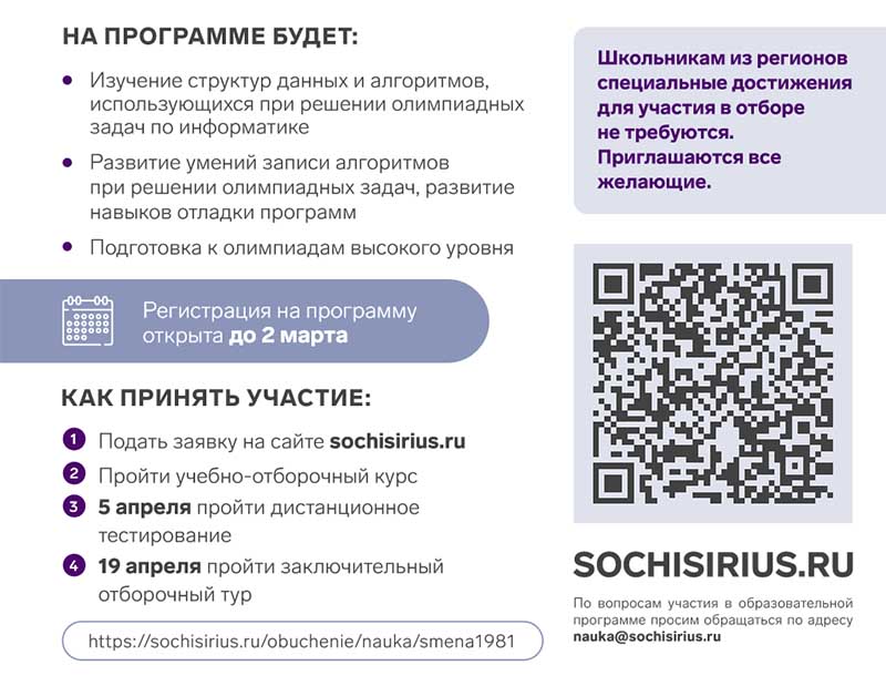 По вопросам участия в программе просим обращаться по адресу nauka@sochisirius.ru.
