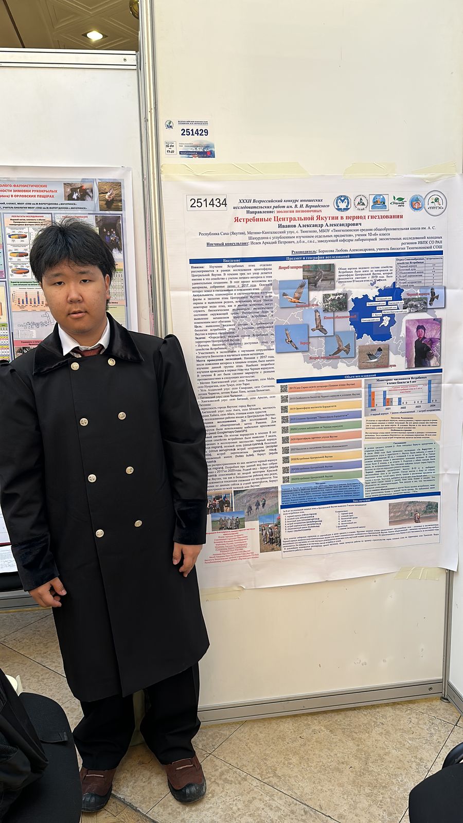 - Иванов Александр, 10 класс МБОУ «Тюнгюлюнская средняя общеобразовательная школа им. А.С. Шахурдина», научный руководитель -Борисова Л.А., учитель биологии, работа «Ястребиные центральной Якутии» - диплом 1 степени, грамота "Лучшая работа, представленная сельской школой", победитель номинации "За творческий подход к оформлению работы".
