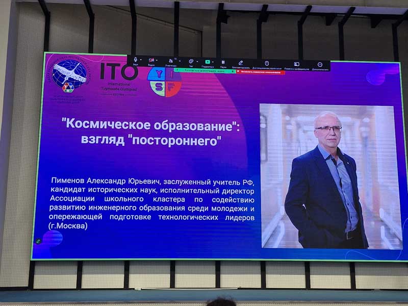 С докладом "Космическое образование": взгляд "постороннего" выступил Пименов Александр Юрьевич, заслуженный учитель РФ, кандидат исторических наук, исполнительный директор Ассоциации школьного кластера по содействию развитию инженерного образования среди молодежи и опережающей подготовке технологических лидеров (г.Москва).