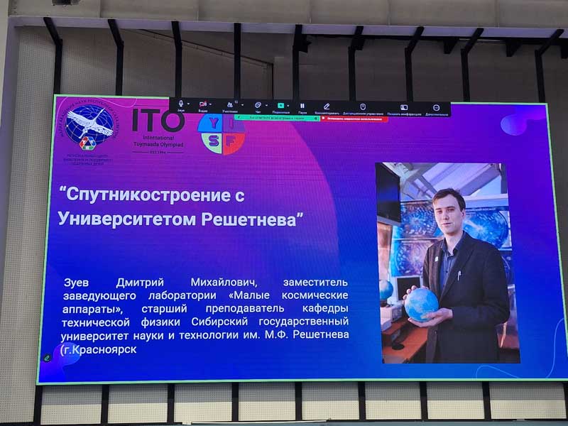 Зуев Дмитрий Михайлович, заместитель заведующего лаборатории «Малые космические аппараты», старший преподаватель кафедры технической физики Сибирский государственный университет науки и технологии им. М.Ф. Решетнева партнера космической программы МАН РС (Я) выступил с докладом “Спутникостроение с Университетом Решетнева”.