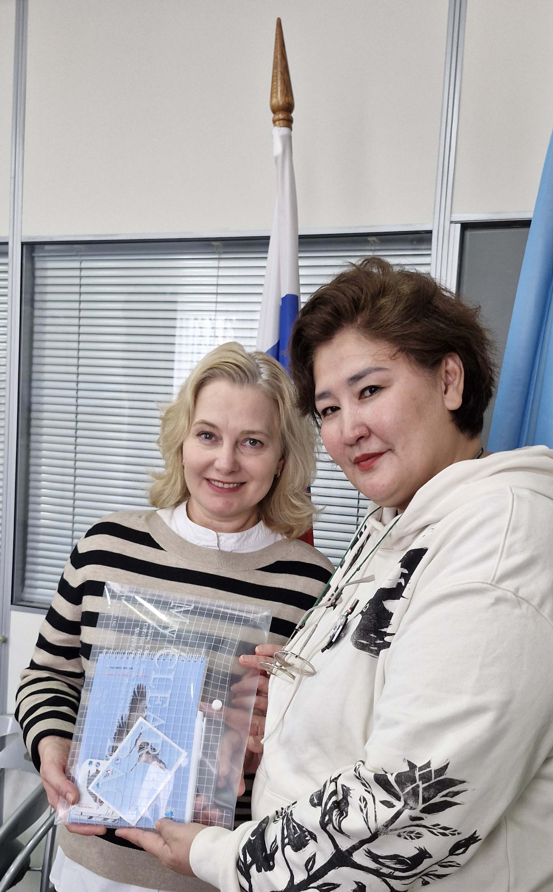 22 сентября 2025 года в г. Якутске прошла встреча с представителями "Полюс Фонда": Оксаной Галинской, координатором грантовых конкурсов благотворительного фонда "Полюс фонд", Татьяной Гладковой, директором по работе с государственными органами АО «Полюс Алдан», сотрудником пресс-службы фонда Натальей Лукьяновой.