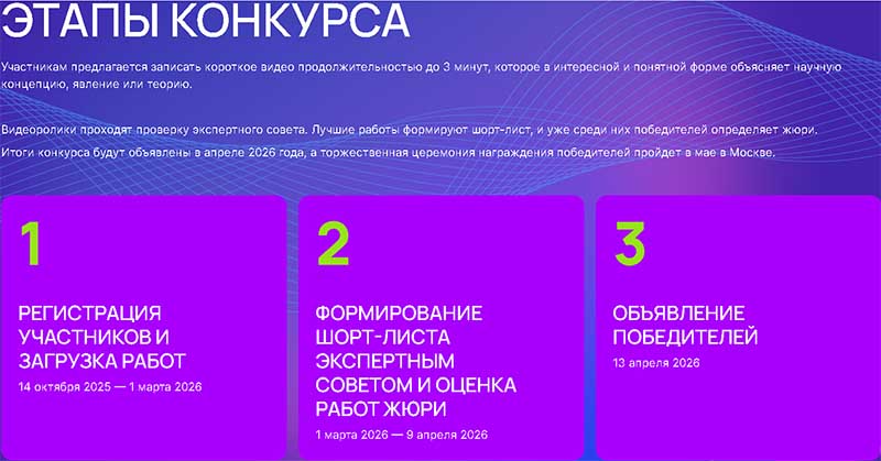 14 октября 2025 года стартовал конкурс научно-популярного видео «Знаешь? Научи!» (далее – Конкурс), который позволяет школьникам заявить о себе как о будущих молодых ученых, проявить таланты популяризаторов науки и продемонстрировать свои проекты и идеи.