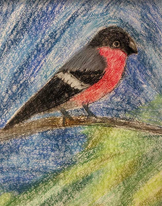 1 место: Ешметова Милана Александровна (2 кл., МБУДО «Алданская ДШИ им. А.Т. Никитина», г. Алдан) – работа «Снегирь».
