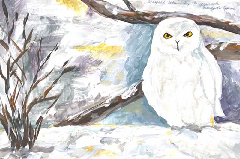 3 место: Винокурова Руфина Христофоровна (10 кл., МБОУ «Хоробутская СОШ имени Дмитрия Таас», Мегино-Кангаласский улус) – работа «Полярная сова».